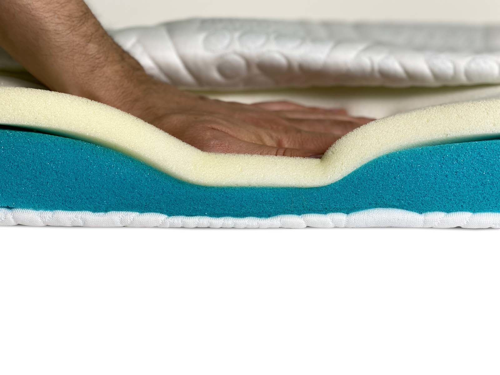 Благодаря такому сочетанию - топпер обладает разными эффектами сторон (отличаются плотность и скорость реакции / вязкости материалов).
