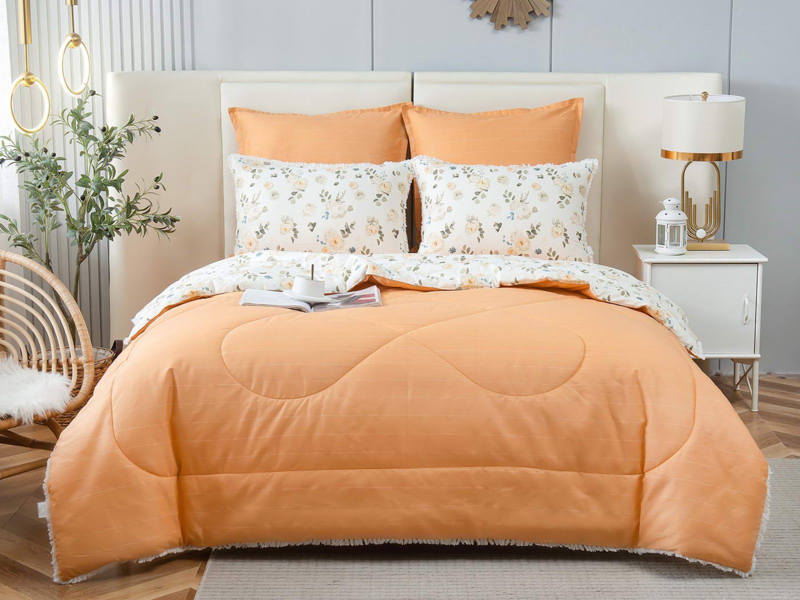 В комплекты комфортеров с одеялом Бернадетт входят наволочки, простыня и легкое всесезонное одеяло. Оцените это современное и очень удобное решение, которое идеально подходит тем, кто не любит возиться с пододеяльниками.