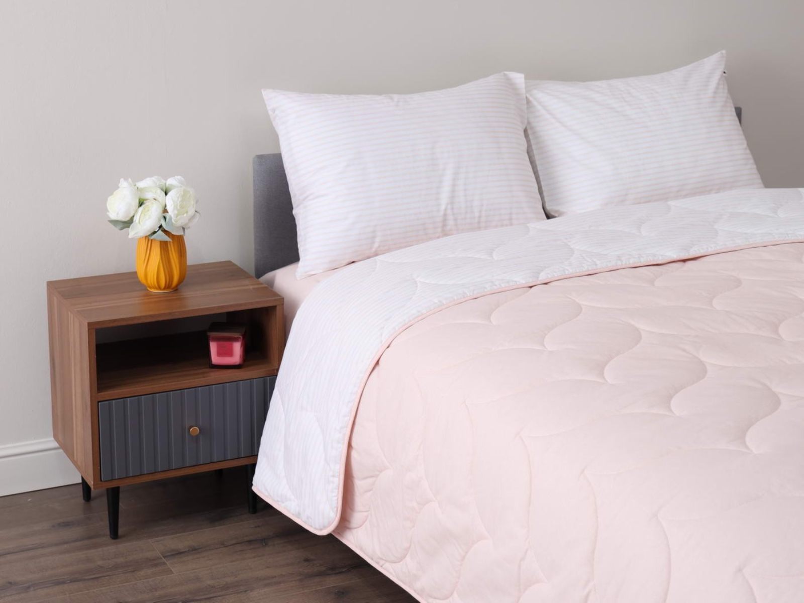 Комплект Мелвин легко стирается в обычной машине в бережном режиме и также легко гладится.
