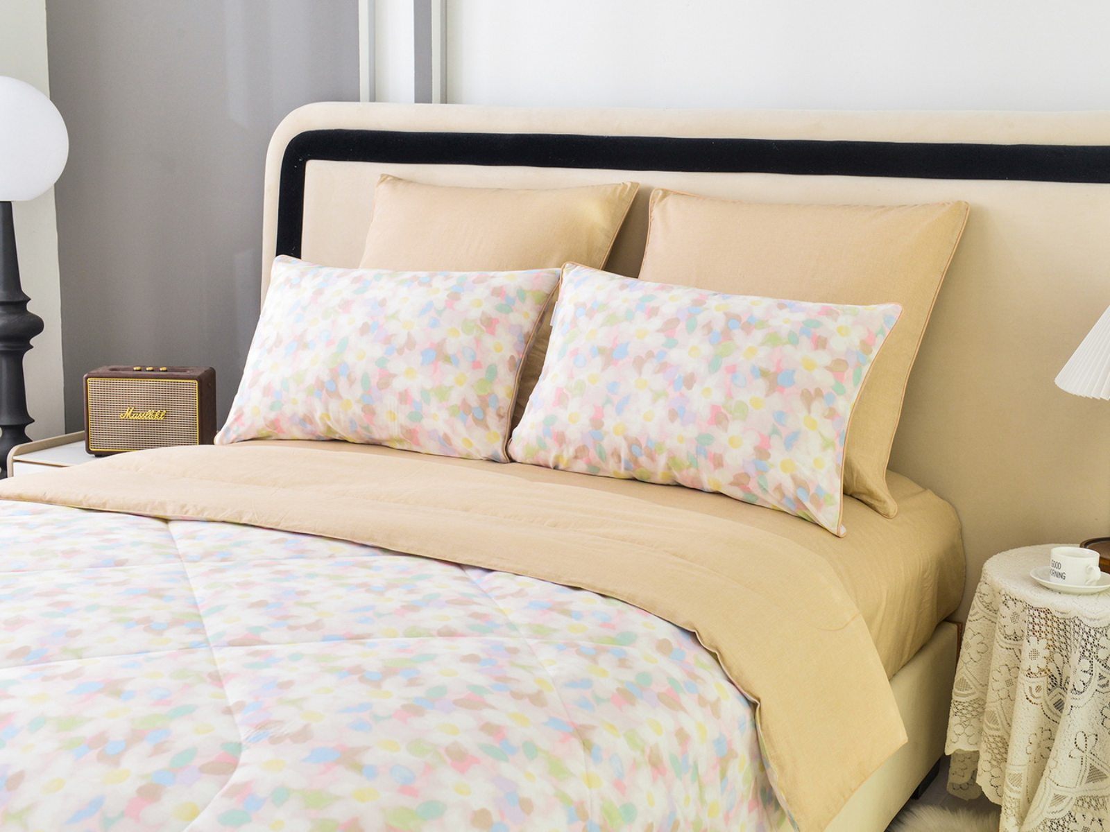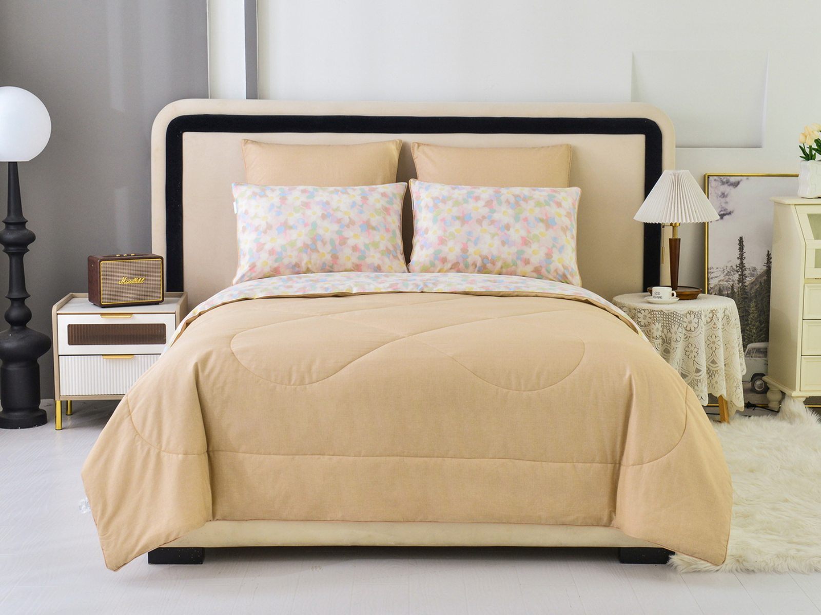 Особенность: двусторонняя модель, наволочки и одеяла декорированы кантом.