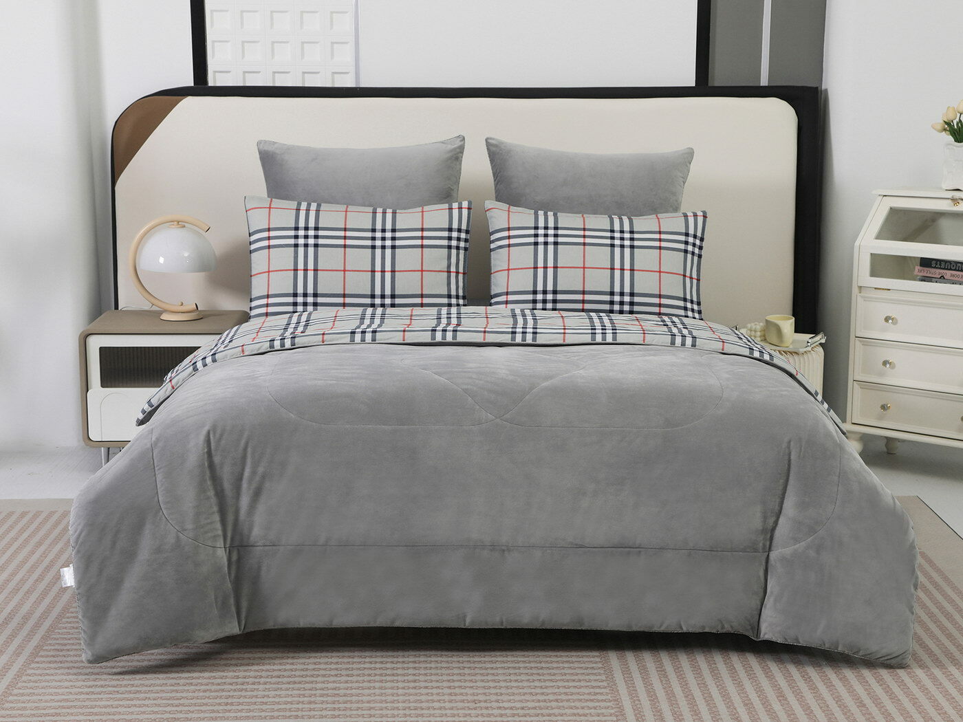 Новая коллекция комплектов «Роберто» с одеялом из однотонного велюра и принтованного сатина.