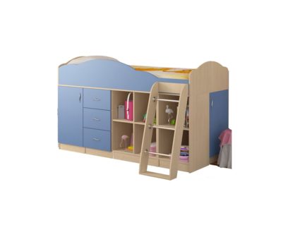 Кровать-чердак Дюймовочка-5.4 представляет собой комбинированный комплекс для детей с компактной системой хранения. Полноценные рабочий стол, просторное спальное место подойдет и для ребенка и подростка.