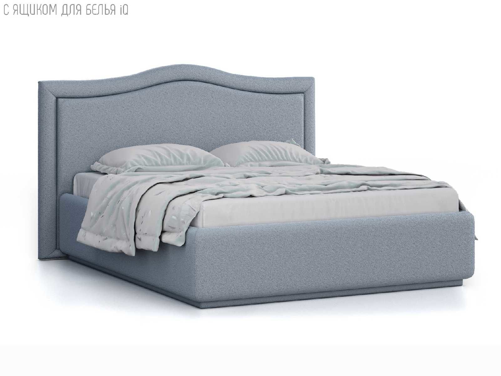 Кровать укомплектована IQ с подъемным механизмом и ящиком для белья без дна (дополнительная платная опция - дно к ящику IQ из HDF (ХДФ). Каркас кровати на цоколе, декоративный чехол на цоколе съёмный. Глубина ящика для белья - 30 см, без ограничения нагрузки на ящик.