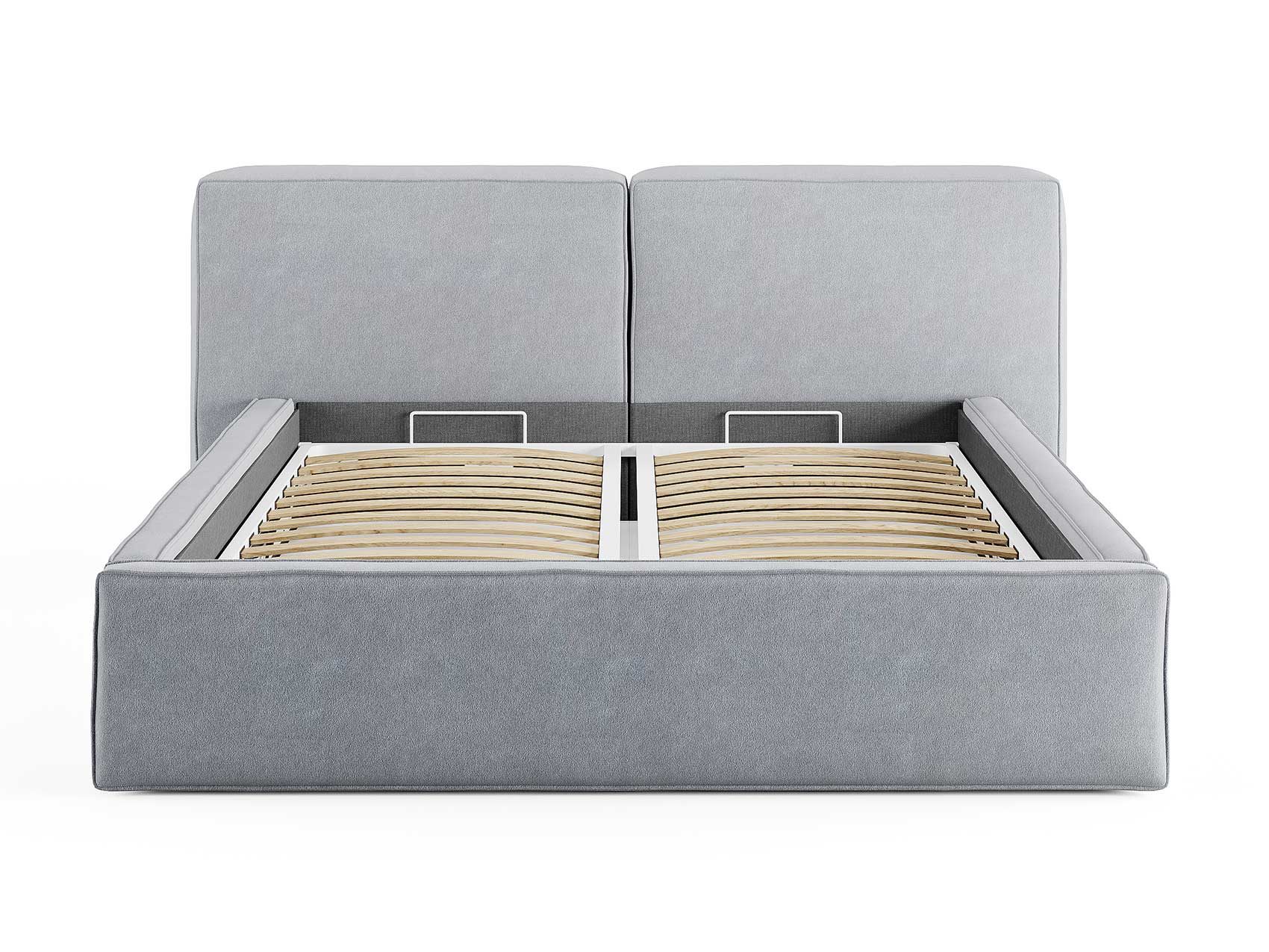 Кровать комплектуется металлическим основанием и подъемным механизмом со вместительным бельевым ящиком. Дно бельевого ящика легко сдвигается для обеспечения уборки под кроватью.