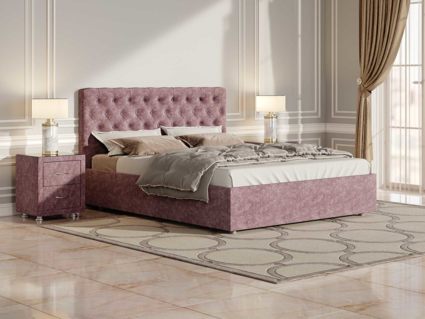 Элегантная интерьерная кровать с изголовьем, украшенным декоративными пуговицами и глубокой пиковкой. Модель изготовлена из ДСП. При необходимости кровать может быть укомплектована подъемным механизмом с бельевым ящиком или трансформируемым основанием Aquarius (размером 160-200).