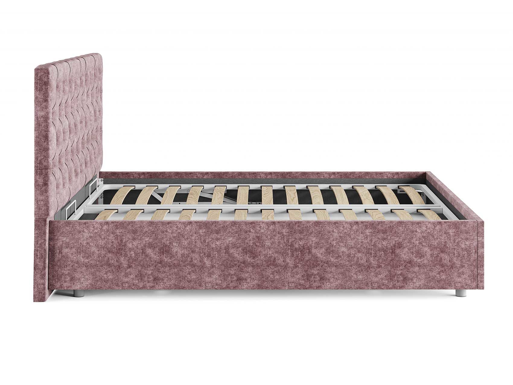 Кровать комплектуется металлическим основанием (без опор), которое имеет 13 рядов встроенных березовых ламелий на каждое спальное место, обеспечивая равномерное распределение нагрузки.