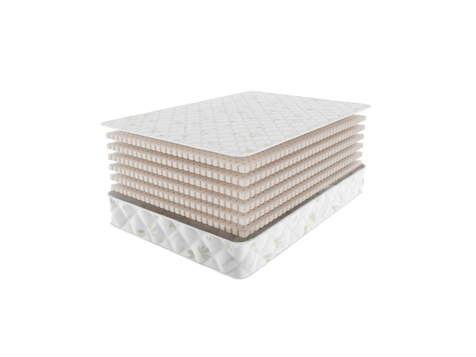 Внутри матраса установлено сразу 6 плит натурального латекса по 3 см каждая. Такой объём позволяет в полной мере насладиться всеми особыми характеристиками пены. К тому же материал обеспечит матрасу очень долгую жизнь. Латекс способен служить до нескольких десятилетий в отличие от искусственных пен.