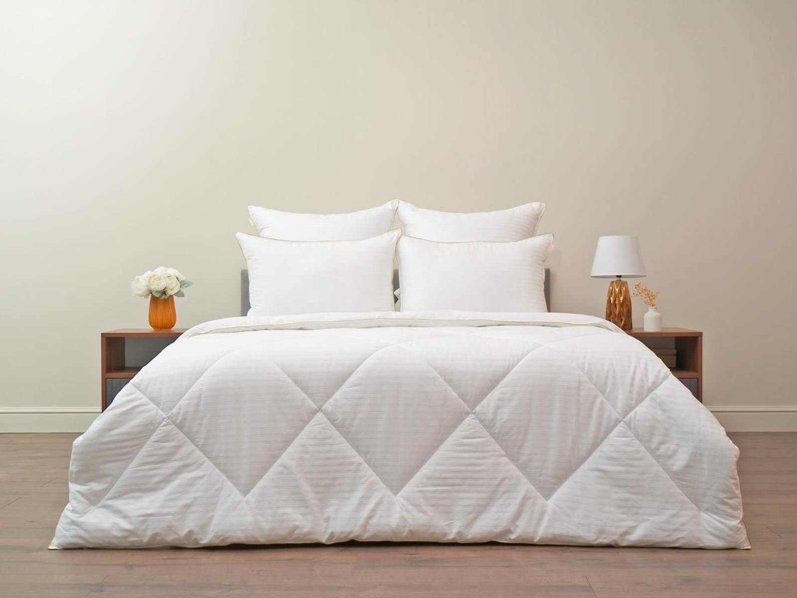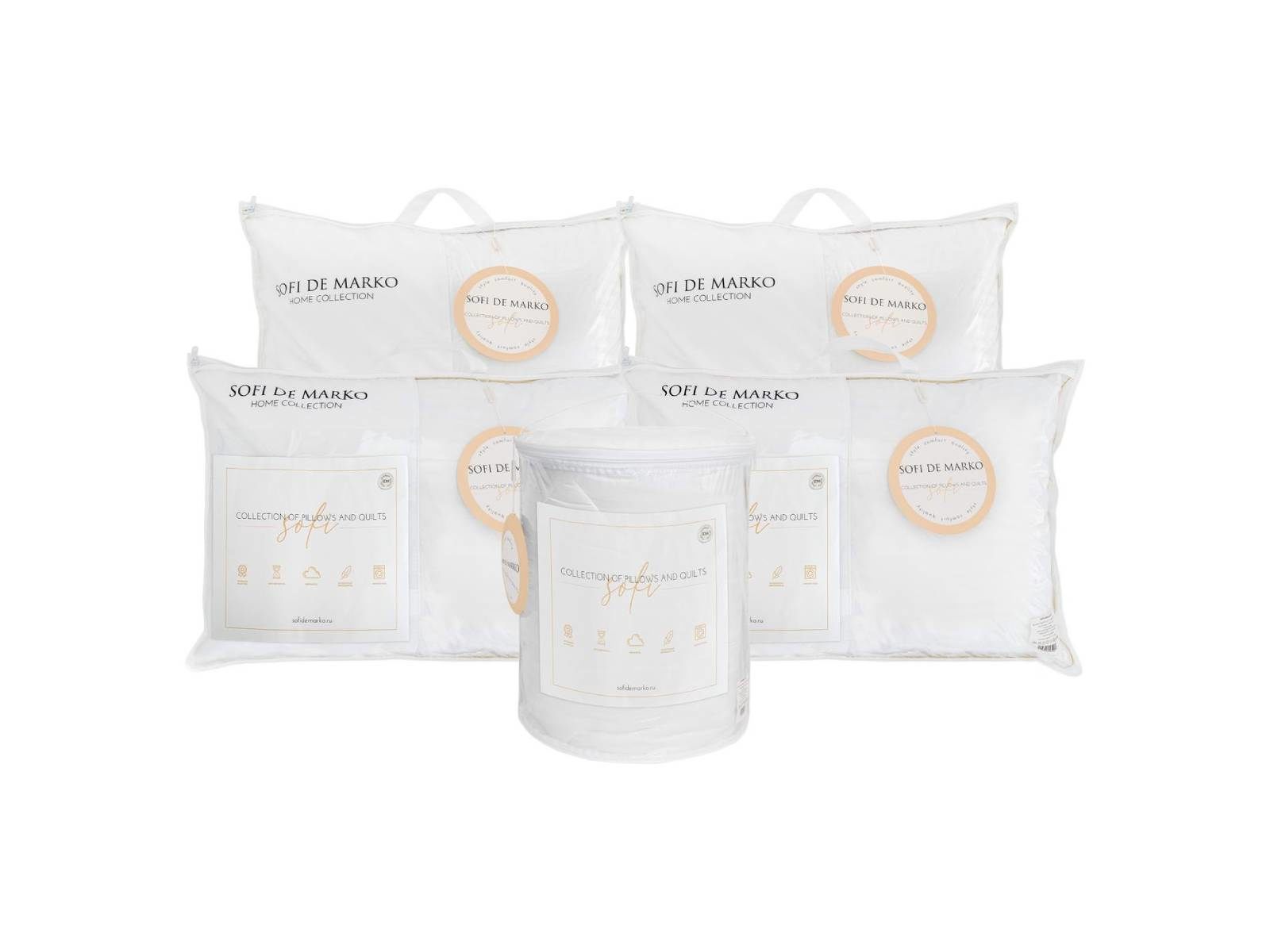 В качестве наполнителя используется 100% искусственный лебяжий пух. Этот современный наполнитель гипоаллергенен и обладает долгим сроком службы. Искусственный лебяжий пух в подушках SOFI поддерживает голову в правильном положении и обеспечивает крепкий и здоровый сон. А одеяла SOFI с таким наполнителем можно использовать в любое время года.