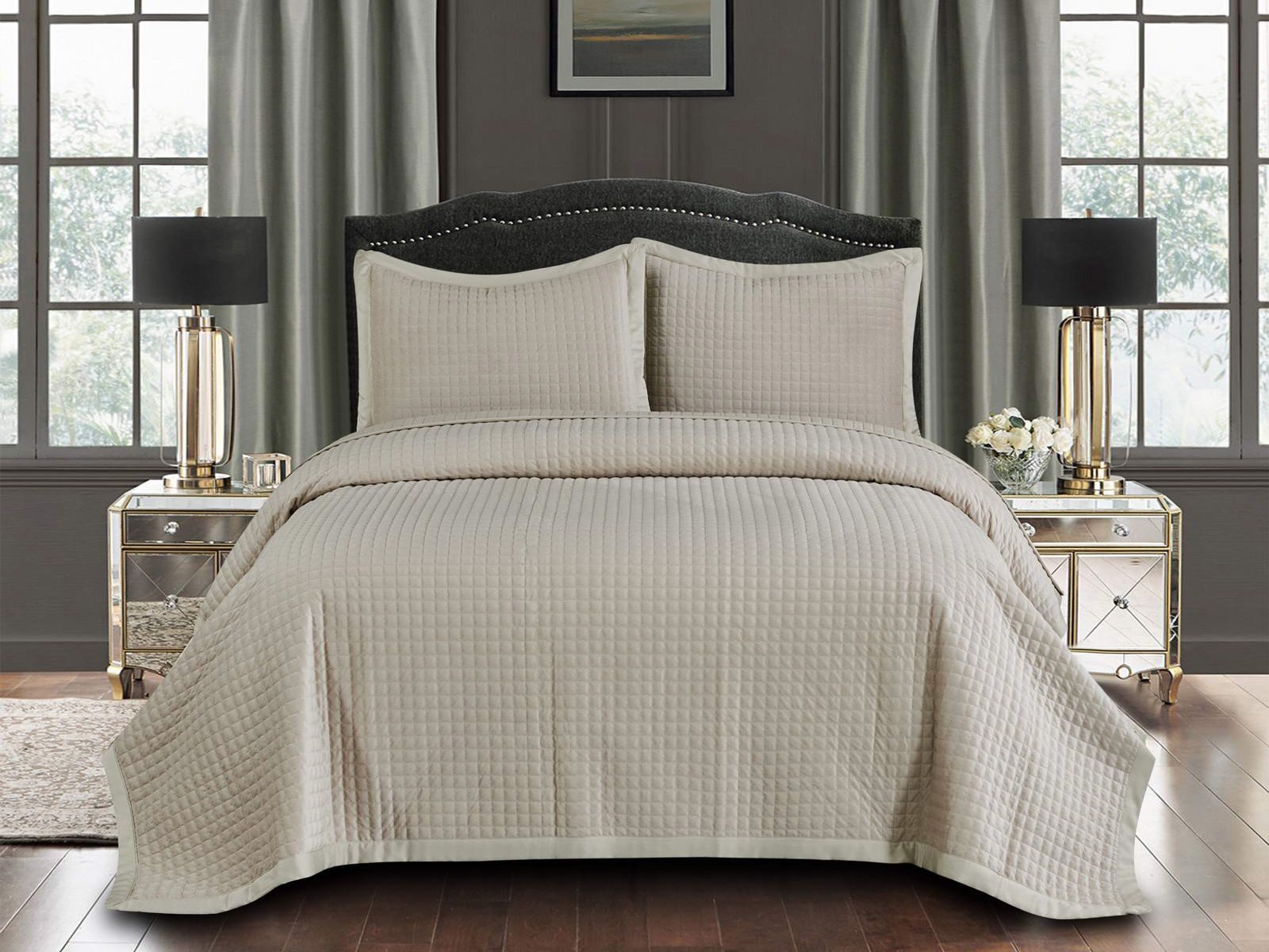 Стеганые покрывала Лоретта выполнены с окантовкой в тон основному цвету. Они не только эффектны, но и практичны: не требуют специального ухода благодаря тому, что изготовлены из современных материалов. Покрывала хорошо держат форму даже после долгого использования, не тянутся и не линяют. Их можно стирать в обычной стиральной машине, в режиме бережной стирки при температуре не выше 30 градусов.