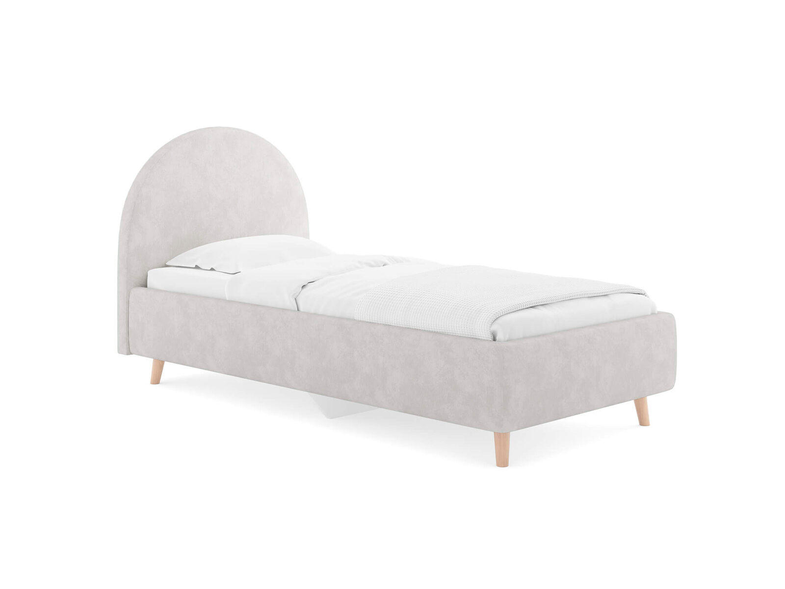 Подростковая кровать с закругленным изголовьем — это идеальное решение для создания уютного и стильного пространства в комнате. Элегантные линии изголовья не только придают изделию изысканный вид, но и добавят мягкость в интерьер, создавая уютную обстановку. По умолчанию задняя спинка кровати обивается тканью, что позволит расположить кровать не только к стене. Основание кровати на высоких деревянных ножках. Благодаря увеличенной высоте позволяют осуществлять легкую уборку под кроватью, даже с помощью робота-пылесоса. При необходимости кровать может быть укомплектована трансформируемым основанием Aquarius.
