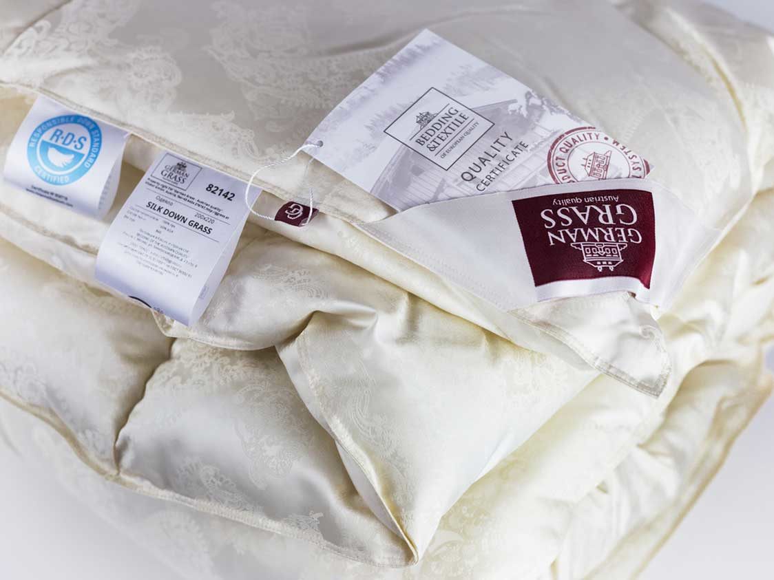 Сочетание сливочного пуходержащего жаккардового сатина PAISLEY из натурального 100% шелка и первоклассного пухового наполнителя категории “Экстра” повышенной упругости (Fill Power не менее 850 ед.) – это совершенный эксклюзив в мире постельных принадлежностей. Высокая плотность ткани и двойная отстрочка не позволят пуху мигрировать из изделия и не пропустят частички пыли внутрь. Эксклюзивные ткани создаются на единственном производстве в Европе – старейшей немецкой ткацкой фабрике – в лимитированном количестве. Для того, чтобы ткать шелковый пуходержащий жаккард с узором, необходимо обладать высочайшим уровнем мастерства. Кассетные одеяла ручной работы предназначены для использования в холодное время года. Каждая кассета размером 30х30 см наполнена отборным белым пухом вручную. Как и всякий эксклюзив, изделия этой коллекции требуют особого ухода при обслуживании: мы не рекомендуем их стирать, допускается только сухая чистка изделий.