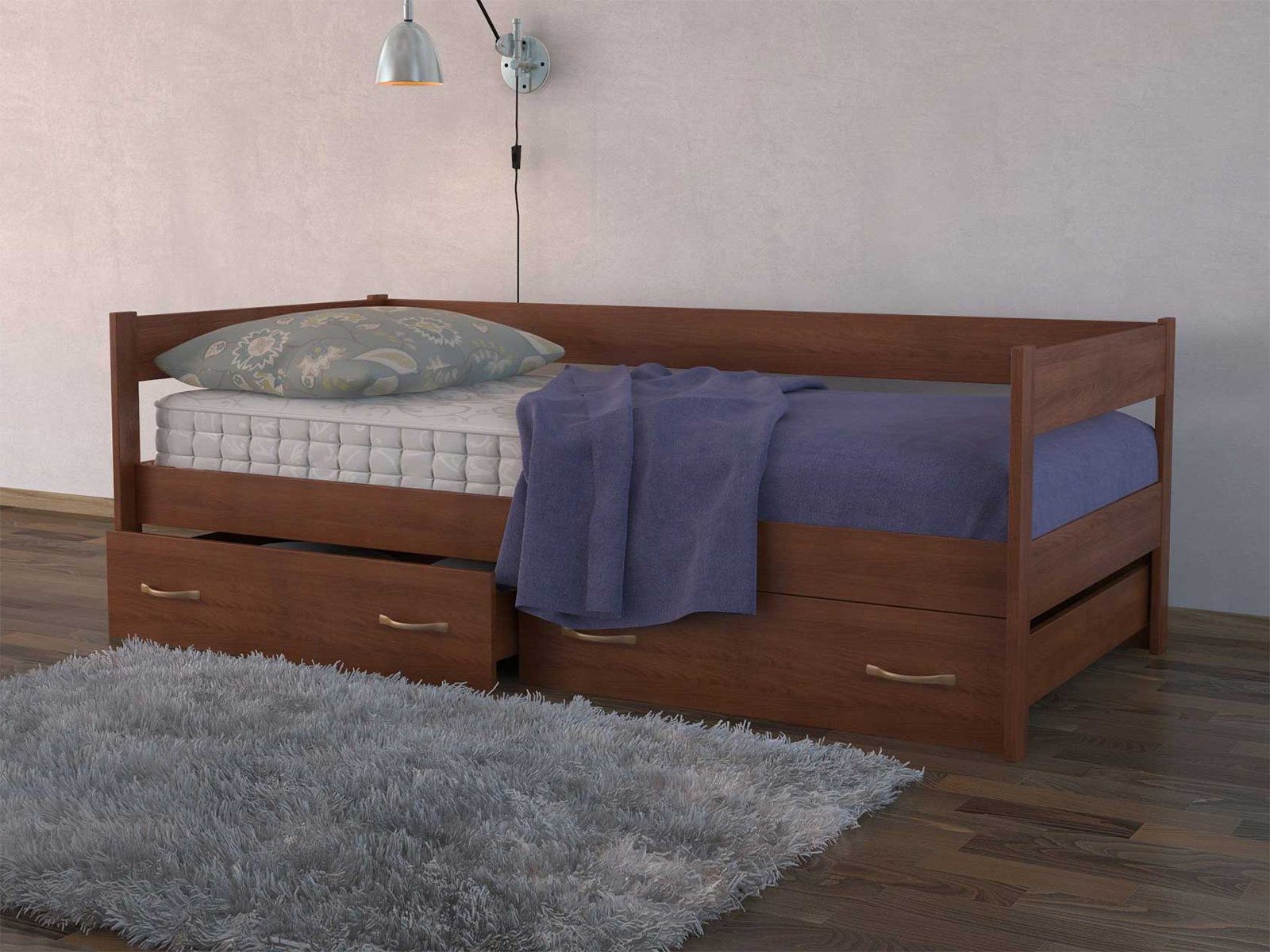 Оригинальная деревянная тахта из массива ясеня. Поставляется с двумя ящиками. Покрывается высококачественным полиуретановым лаком (Испания), что защищает поверхность от царапин и прочих повреждений.