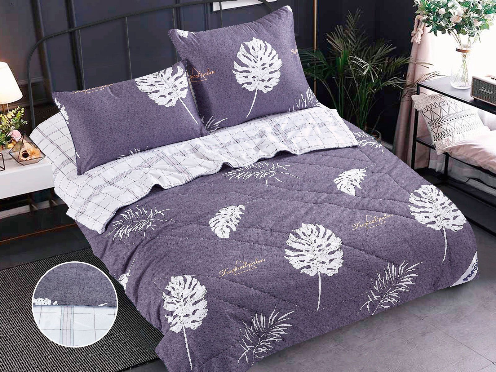 В данный комплект вместо пододеяльника входит облегченное одеяло. Комплект подойдет тем, кто устал от мучительного натягивания пододеяльников на одеяло.